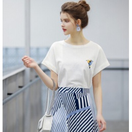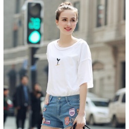 - 夏季新款纯棉白色T恤女短袖韩版休闲刺...