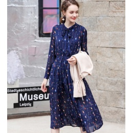 - 春夏新款时尚印花雪纺连衣裙收腰显瘦长...