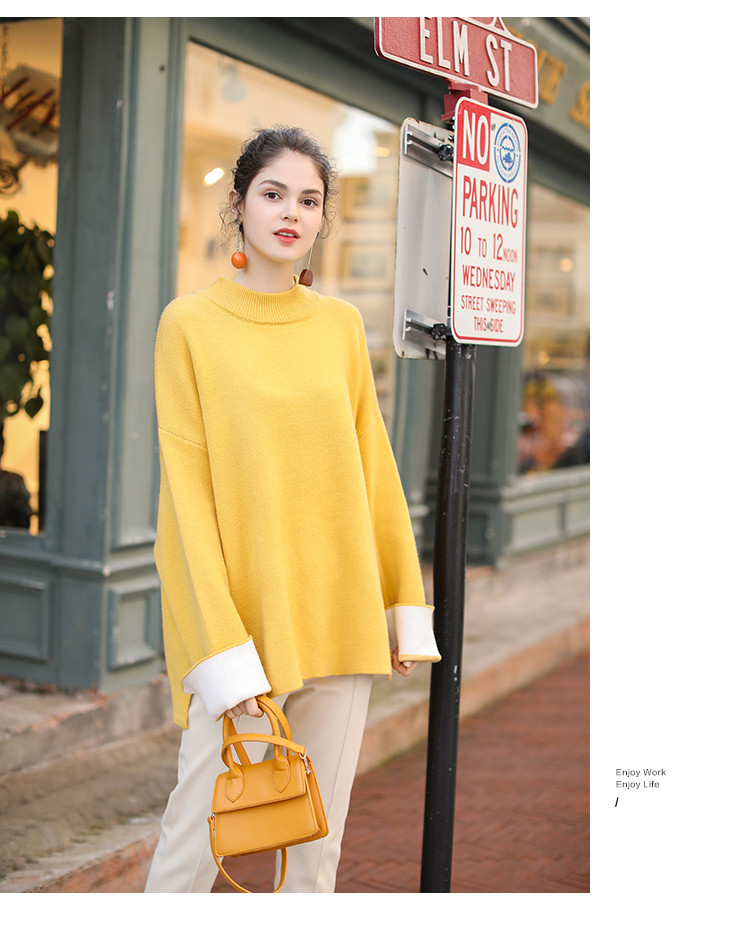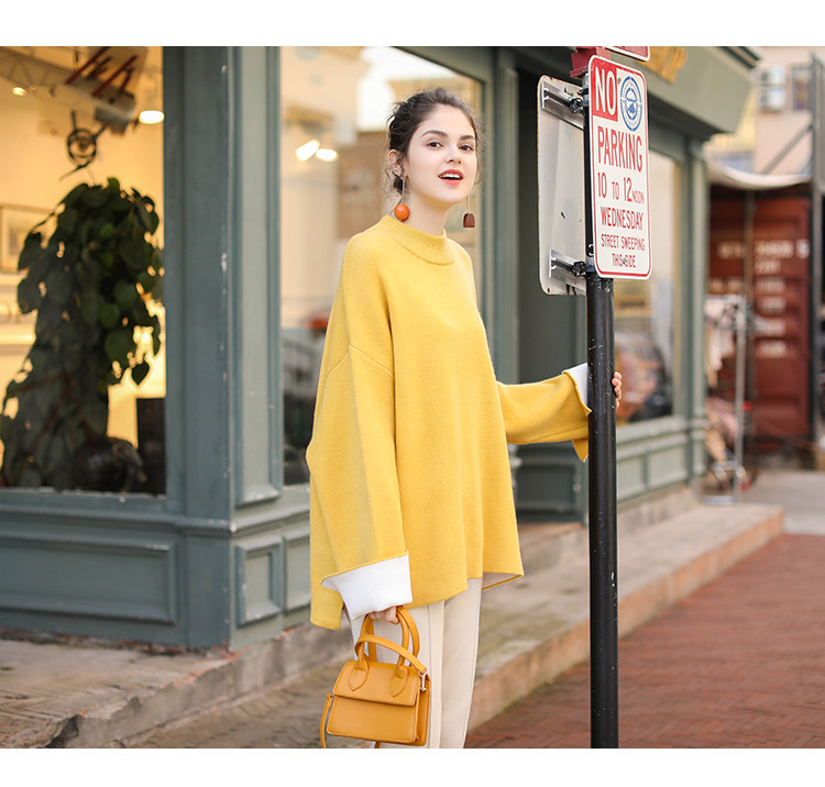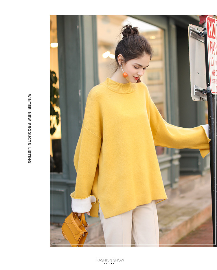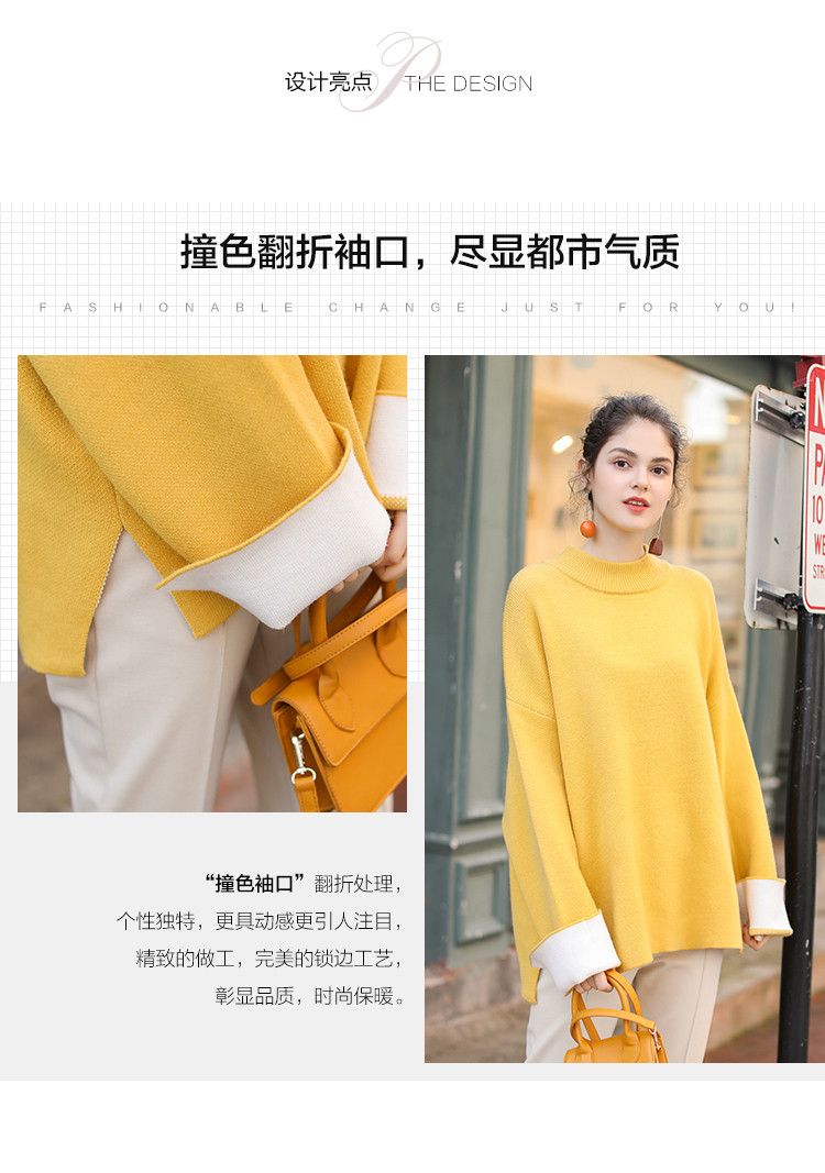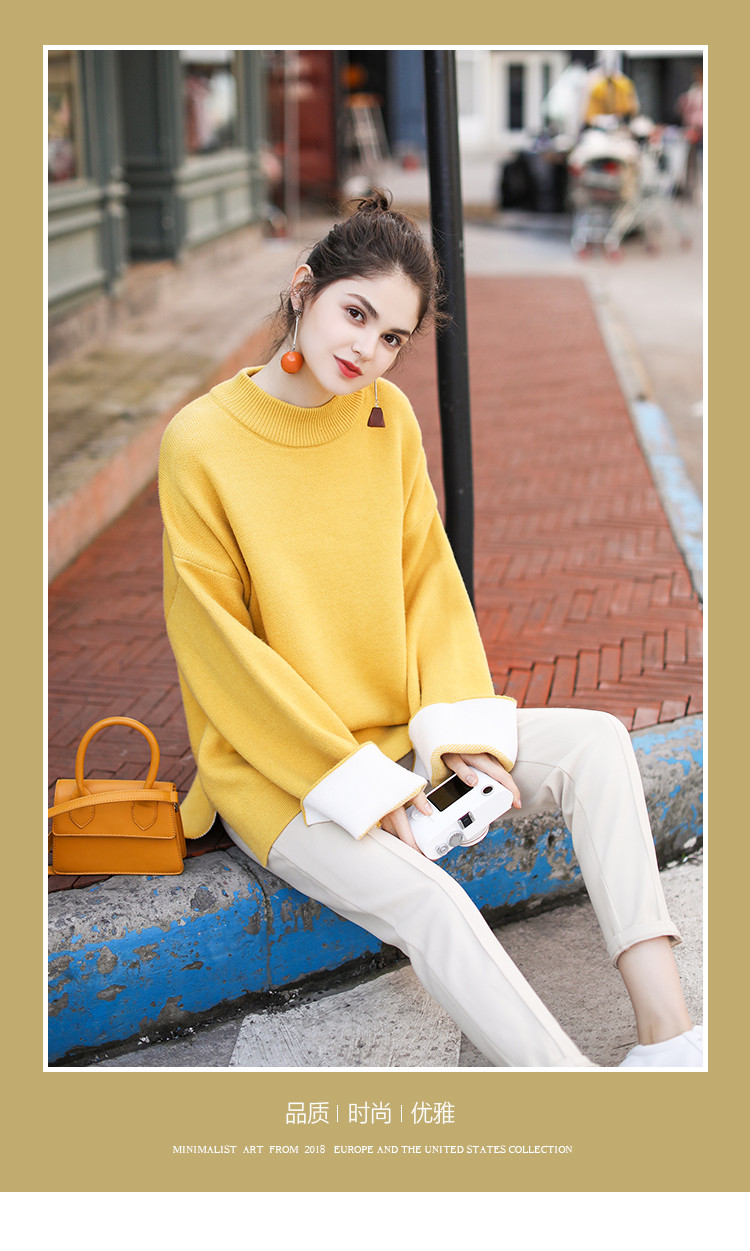 • 商品名称:春装新款时尚减龄拼色长袖针织衫女式宽松圆领套头毛衣