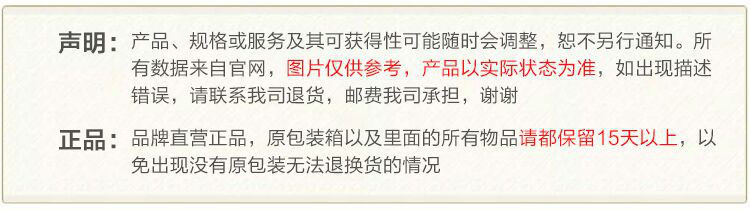 注:因厂家会在没有任何提前通知的情况下更改产品包装、产地或者一些附件,本司不能确保客户收到的货物与商城图片、产地、附件说明完全一致。只能确保为原厂正货!并且保证与当时市场上同样主流新品一致。若本商城没有及时更新,请大家谅解!
